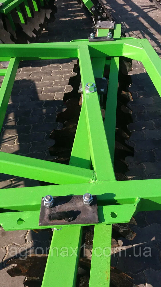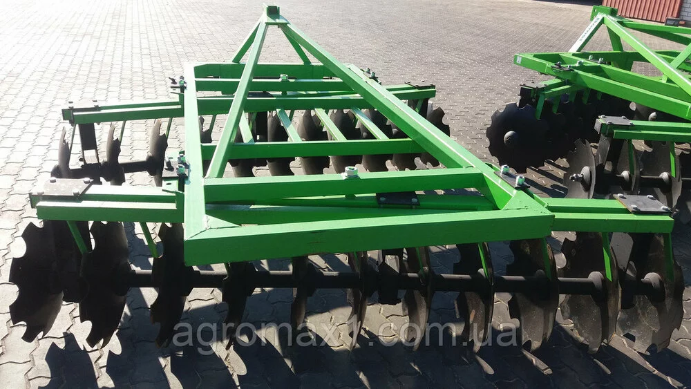 установлены на индивидуальной стойке и имеют наклон к направлению движения агрегата. По устройству рабочих органов дисковой бороны, это позволяет регулировать угол атаки и рабочую ширину захвата диска. Обрабатывающие диски изготовлены из качественной и прочной стали, что гарантирует долгосрочную эксплуатацию.