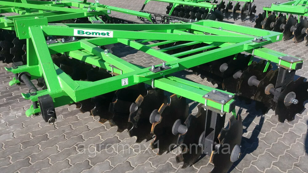 Bomet борона дисковая 2.4 м― почвообрабатывающее орудие, которое используется, чтобы разрыхлить пласты земли и измельчить крупные комья почвы. Тракторная дисковая борона предназначена для ухода за пастбищами и сенокосами, также для измельчения пожнивных остатков после уборки сельскохозяйственных культур. При влажности гарантирует эффективную работу. Крепится к навесной системе трактора.