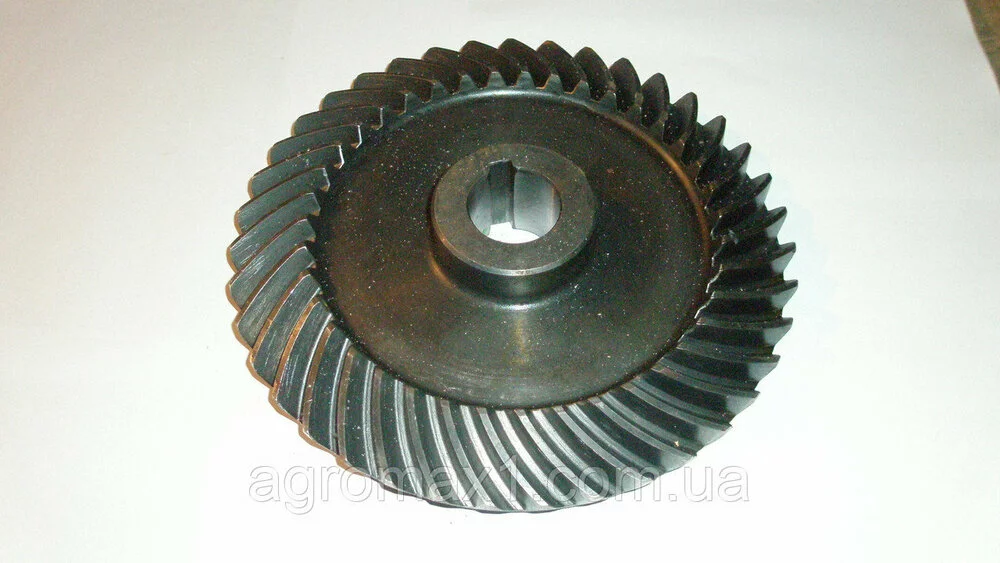 Шестерня приводная большая для картофелекопалки WiraxКартофелекопатель - устанавливается на навесное устройство пропашного колёсного трактора. Основой является рама (корпус) шириной около 1 метра и длиной около 2 метров, опирающийся задней частью на пневматические колёса-ролики. В передней нижней части корпуса расположены ножи (как правило, два), направленные вперёд и под небольшим углом вниз от горизонтального положения, движущиеся вперёд-назад вдоль своей плоскости. В рабочем положении ножи входят в почву на глубину около 15-20 см. и за счёт своего движения и перемещения трактора с картофелекопателем вперёд захватывают и передают слой почвы с корнеплодами вверх, на транспортёр из тонких металлических прутьев, расположенных с зазором 2-3 см. Проходя по транспортёру, частицы земли проваливаются в зазоры, а корнеплоды и ботва отделяются друг от друга и на выходе из транспортёра падают на землю и далее собираются вручную. Транспортёр и ножи приводятся от ВОМ трактора.